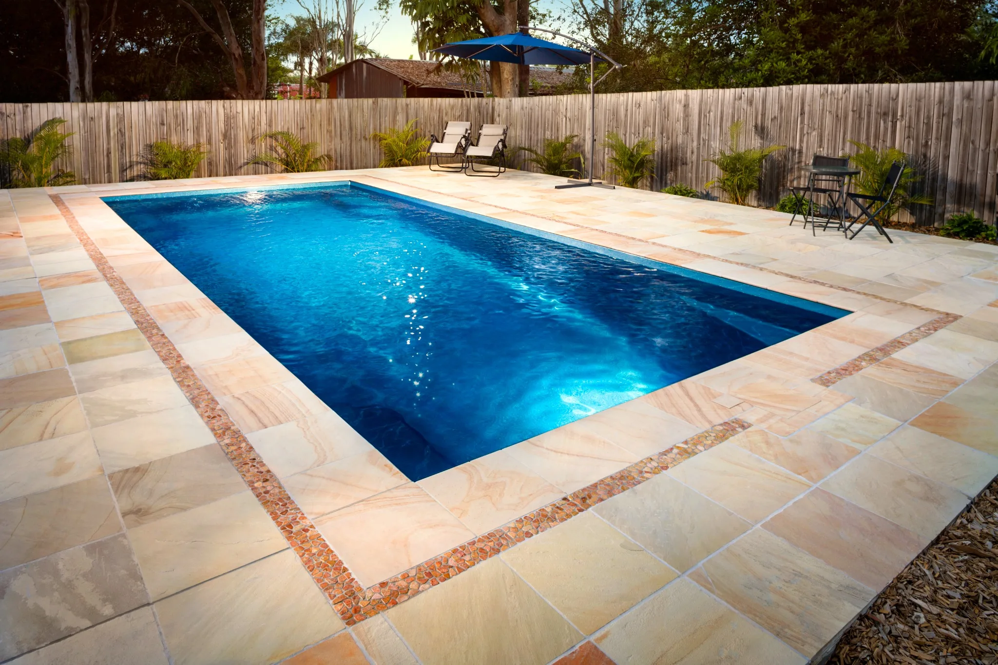 Experience the ease and beauty of a fiberglass pool, known for its durability and low maintenance.