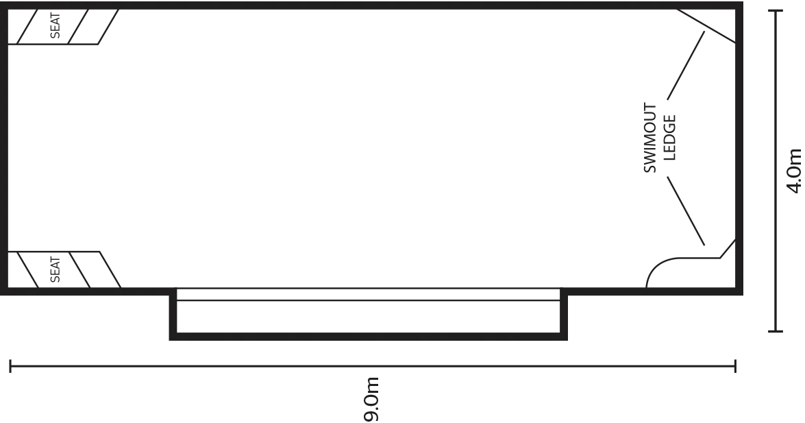 Its standout features are the dual entry steps, strategically placed resting ledges, and its generous 9-metre length, which combine to create a pool that feels both luxurious and practical.